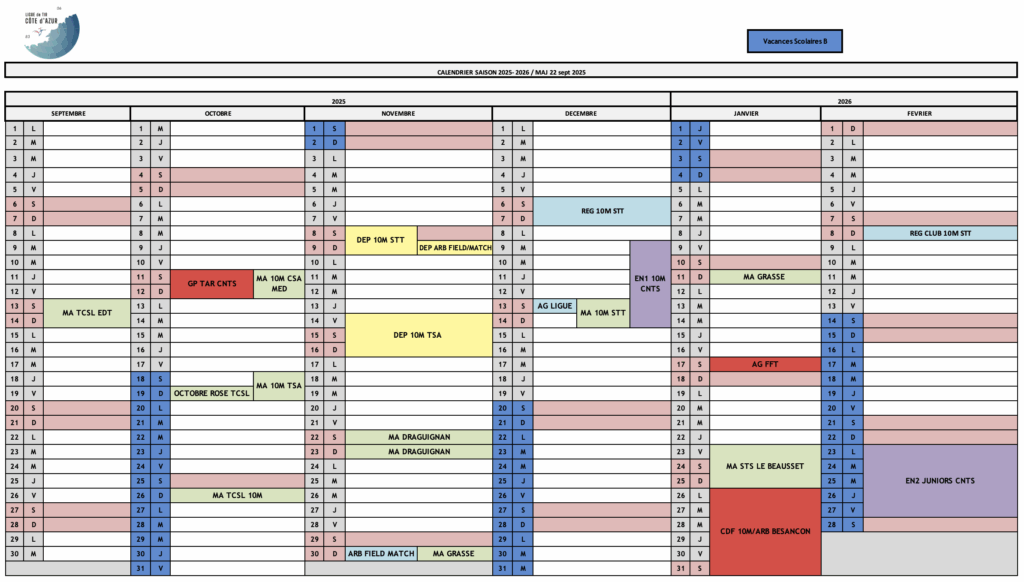 Accueil/Agenda compétition Agenda compétition CALENDRIER SAISON 2025-2026 COMPÉTITIONS LIEN PDF CALENDRIER CALENDRIER COMPETITIONS PDF